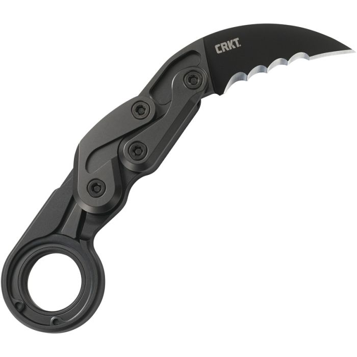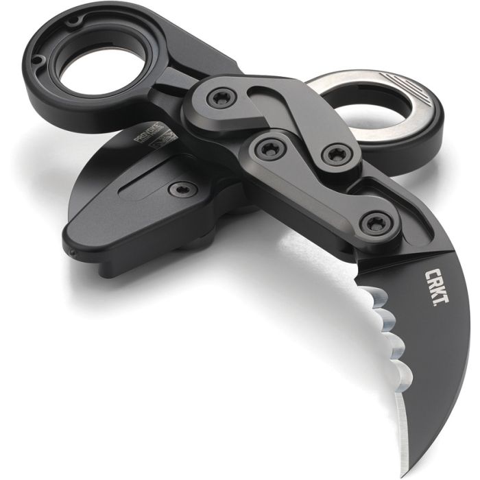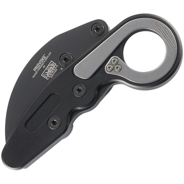 5" (12.7cm) closed. 2.38" (6.05cm) black TiNi coated Veff serrated D2 tool steel blade. Black aluminum handle. Kinematic innovation deploys the blade quickly for first responders. Designed by Joe Caswell. Boxed.