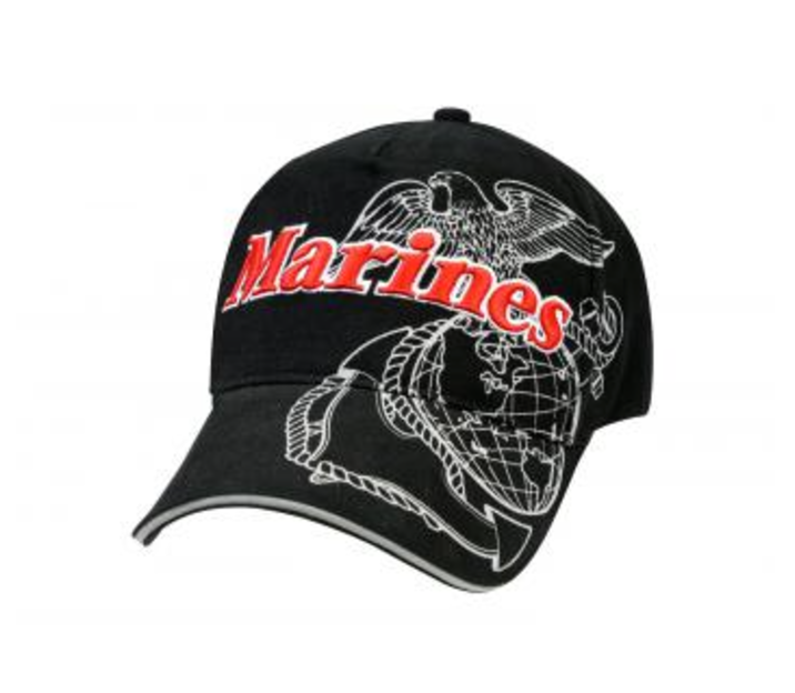 Rothco Deluxe Marines Eagle, Globe & Anchor Low Pro Insignia Cap is made from a durable 100% brushed cotton twill, featuring a raised 3-D embroidered Globe & Anchor insignia on the front panel and brim. This military hat has a hook and loop closure for adjustability and is officially licensed by the United States Marines.