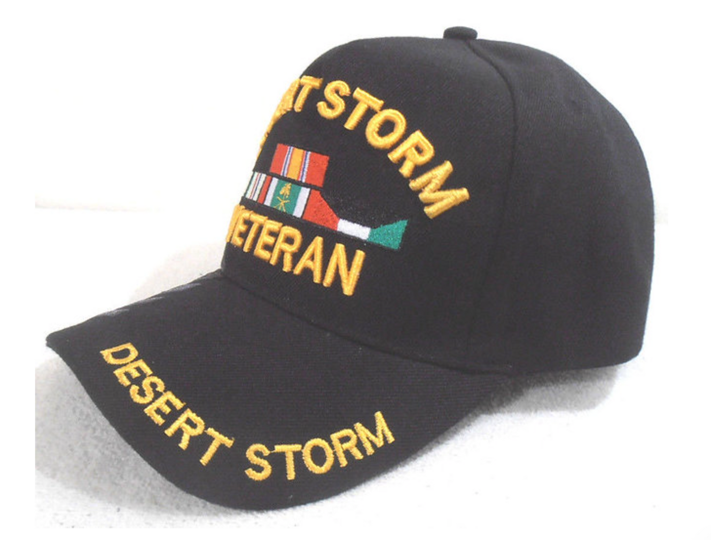 This Desert Storm Veteran cap features a stylish design with ribbons and the word "VETERAN" on the side. Show your pride and honor for your service in the Desert Storm conflict. Expertly crafted and built to last, it's the perfect way to represent your dedicated service.