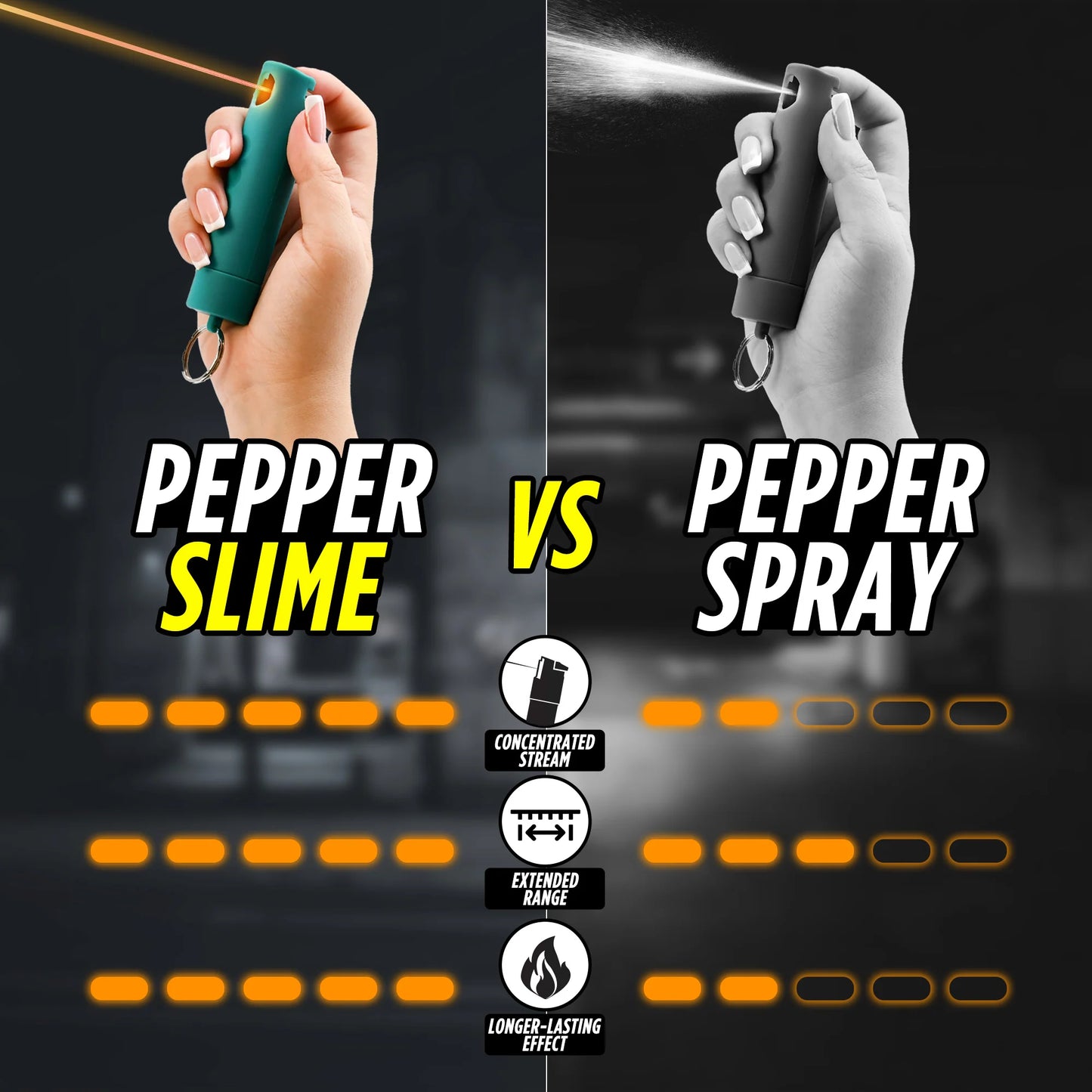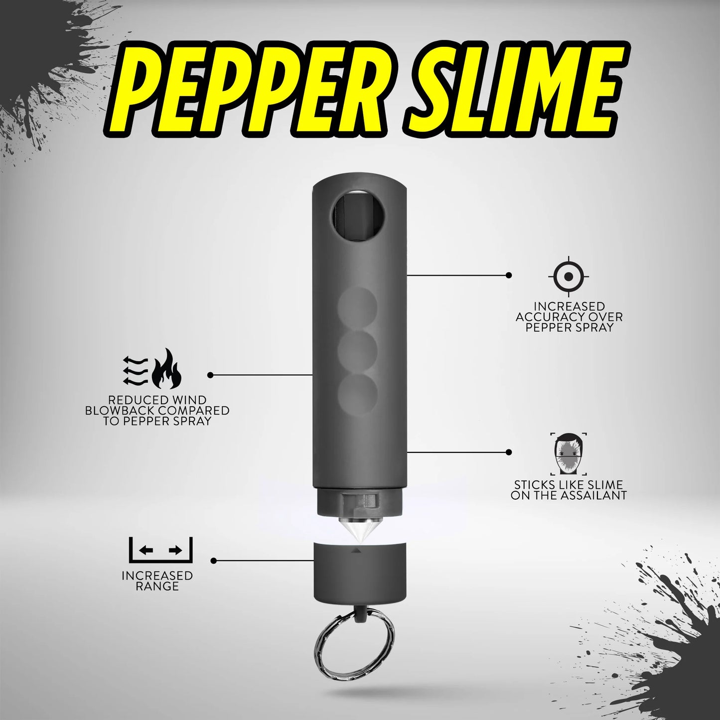- Thick, gunky residue: You thought you never wanted to be pepper sprayed? Try getting pepper slimed - a thick and gunky residue that goes inside the target’s facial crevices to provide ultimate burn, pain and annoyance