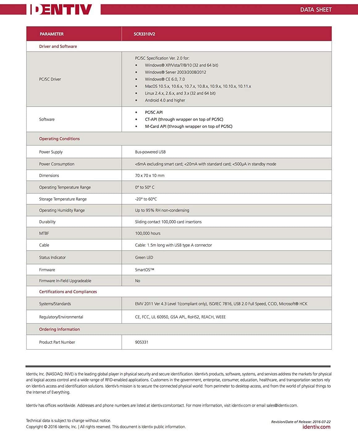 - SEAMLESS INTEGRATION - With Identiv-specific SmartOS you’ll get easy, complete support of all major contact smart card ICs and technologies in one simple reader.