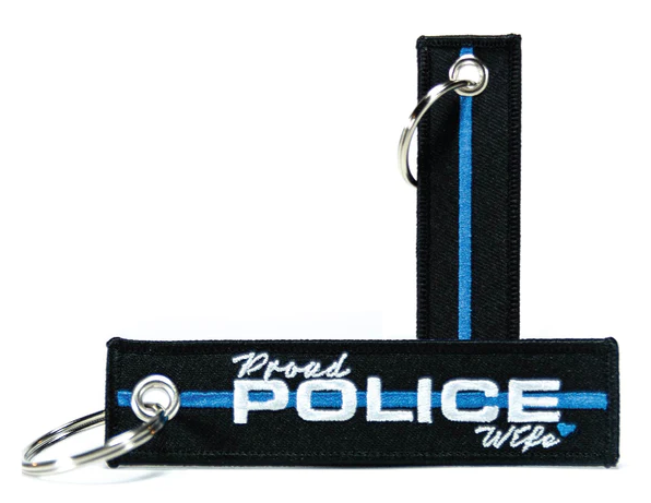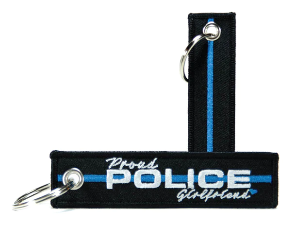 Secure your keys with the exclusive Thin Blue Line personalized keychain. This keychain proudly displays the embroidered text Proud Police along with personalized text to represent yourself, those in your family, or friends. This is the perfect way to show your respect and support for the Law Enforcement community.