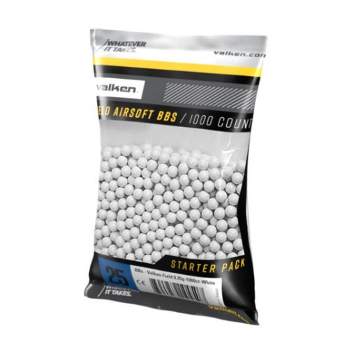 These Valken Field plastic airsoft BBs are the perfect airsoft starter pack for rental guns, or new airsoft players. These 6mm BBs from Taiwan are highly polished and seamless giving you greater accuracy and consistency, and they are packaged in a resealable bag making storage, transport, and loading simple and convenient. We recommend using our Valken airsoft BB Speed Loaders for use with Field BBs when loading mid-cap magazines.